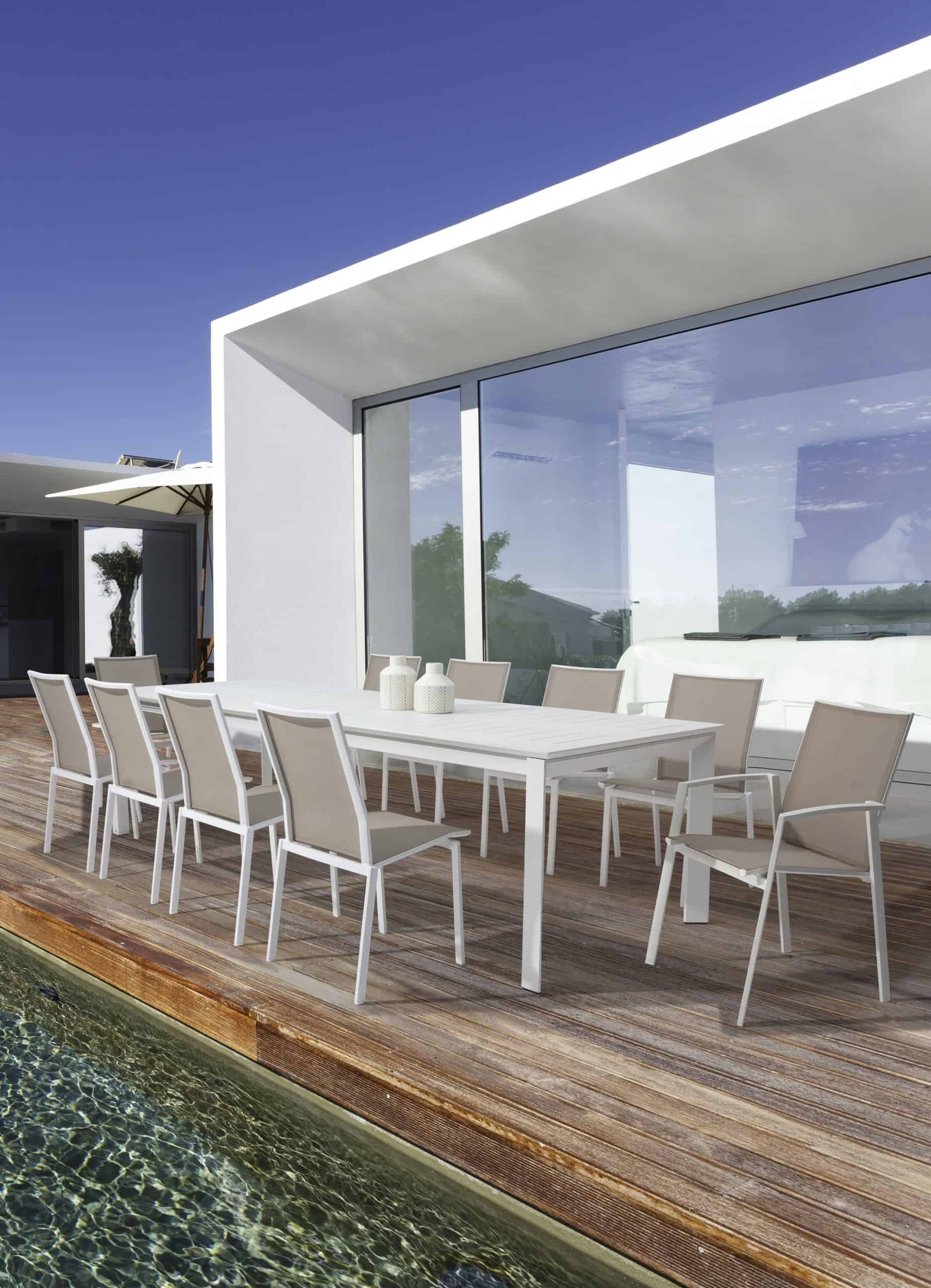 ALLUMINIO VERNICIATO A POLVERE (POLIESTERE). ALLUNGABILE CON APERTURA TELESCOPICA. VITERIA IN ACCIAIO INOSSIDABILE. GAMBE (2 DOTATE DI RUOTE) DA ASSEMBLARE.