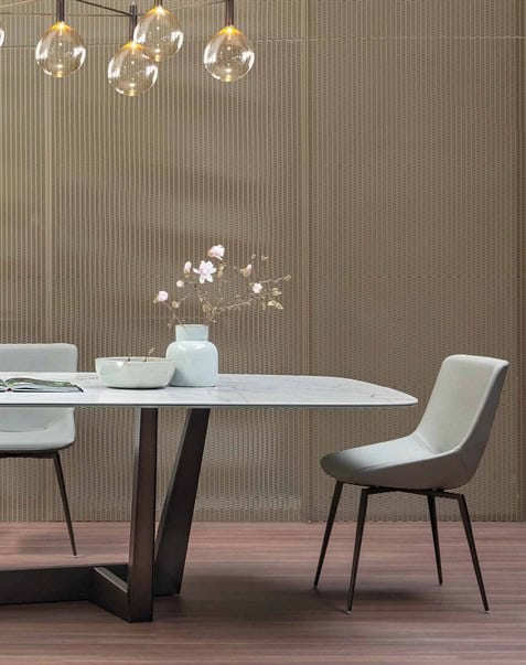 La table Art de Gino Carollo pour Bonaldo est l'expression d'une intuition de design lucide et rationnelle, à l'image de la géométrie qui a inspiré le designer. Un trapèze métallique se développe en diagonale par rapport au plateau, optimisant l'empreinte au sol au profit d'un plus grand espace utilisable. Pour assurer la stabilité, deux pieds sont joints au trapèze qui peuvent être personnalisés avec des inserts dans la même finition que le plateau.Table Art - 250x112 cm, base en bronze, plateau en céramique teinté vieilli avec finition soie, inserts en bronze À PROPOS DE BONALDO : Bonaldo est partenaire de nombreux projets d'architecture d'intérieur. Les typologies de produits offrent un large choix de modèles, de couleurs et de finitions, satisfaisant différents domaines de goût. Bonaldo exprime la modernité à travers l'expérimentation de nouveaux matériaux et la collaboration avec des designers nationaux et internationaux de très grand prestige. Depuis plus de soixante-dix ans, dans le monde entier, les produits Bonaldo meublent des lieux prestigieux : résidences privées, hôtels, restaurants, bureaux... et tous les environnements qui nécessitent une forte composante de design.