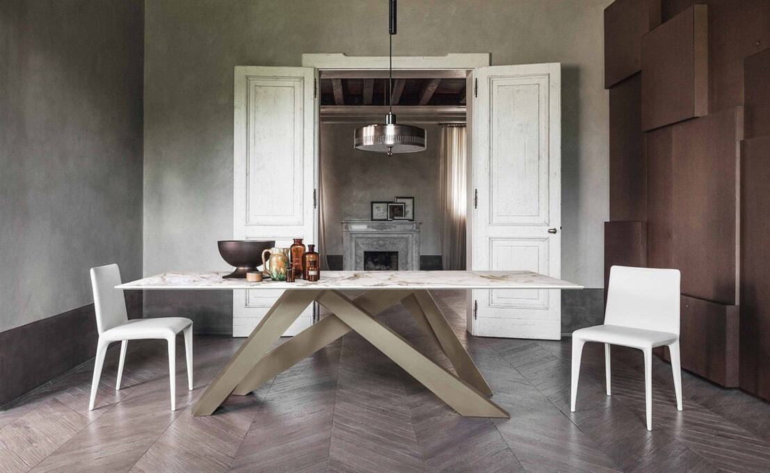 Table BIG - Plateau Céramique Finition Soie Teinte Vieillie / Pieds Métal Laiton Mat L.220 cm Par Bonaldo