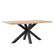 Table à manger rectangulaire GRACE avec plateau en chêne massif épaisseur 50 mm, finition couleur naturelle. Pieds en métal en forme de croix de différentes couleurs au choix : noir mat, blanc mat ou chrome qui donnent à la table sa propre personnalité. Matériaux : Bois de chêne massif et métal Dimensions : 220 x 100 x H75 cm