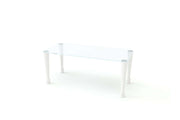 Une table personnalisable originale. Dans cette version, il est proposé avec une étagère rectangulaire en verre.