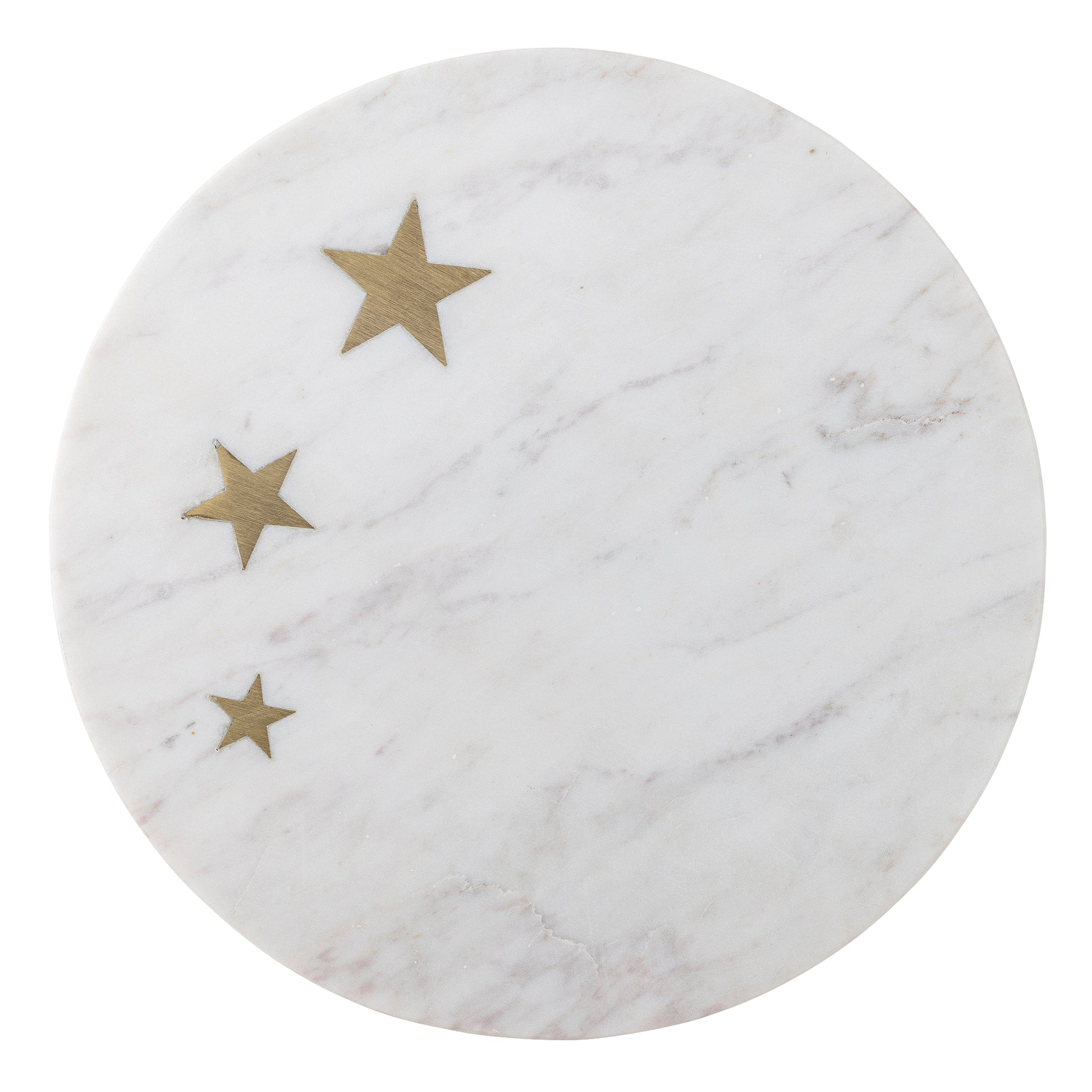 Il vassoio per torta Fenya Star di Bloomingville è realizzato in marmo bianco con tre stelle in ottone intarsiato, aggiungendo un tocco lussuoso che lo rende perfetto sia per l'uso quotidiano che per le occasioni speciali. La forma rotonda e la solida base in marmo garantiscono stabilità e lo rendono ideale per presentare torte, crostate, formaggi o altre prelibatezze. La struttura del marmo naturale può variare, rendendo ogni vassoio unico.