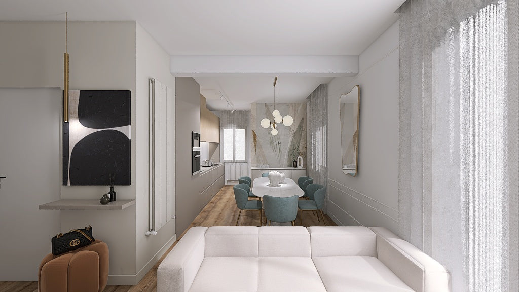Una trasformazione di un appartamento da ristrutturare in stile moderno, con un tocco elegante