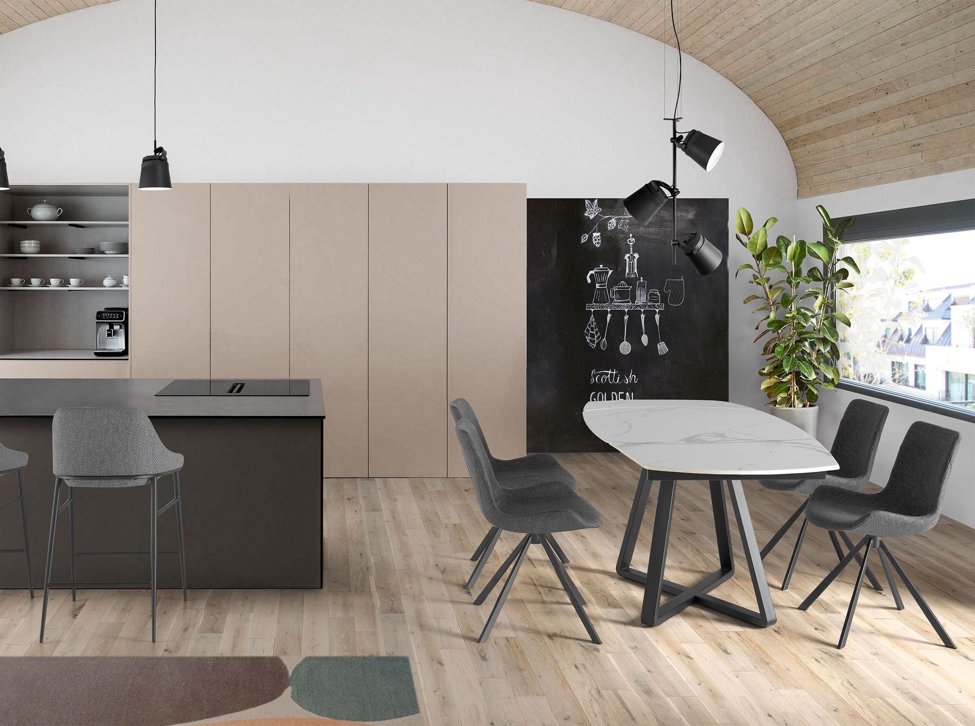 Tavolo da pranzo allungabile barile ovale marmo porcellanato e acciaio nero modelle 1096 Angel Cerdá S.L.