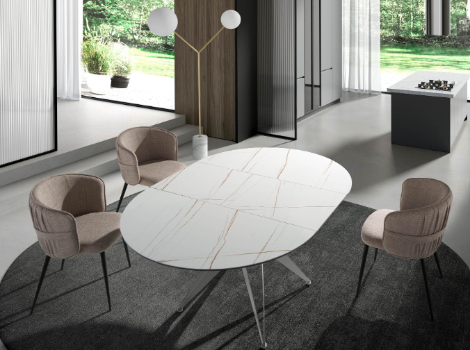 Tavolo da pranzo allungabile rotonda marmo porcellanato e acciaio color grigio modelle 1119 Angel Cerdá S.L.