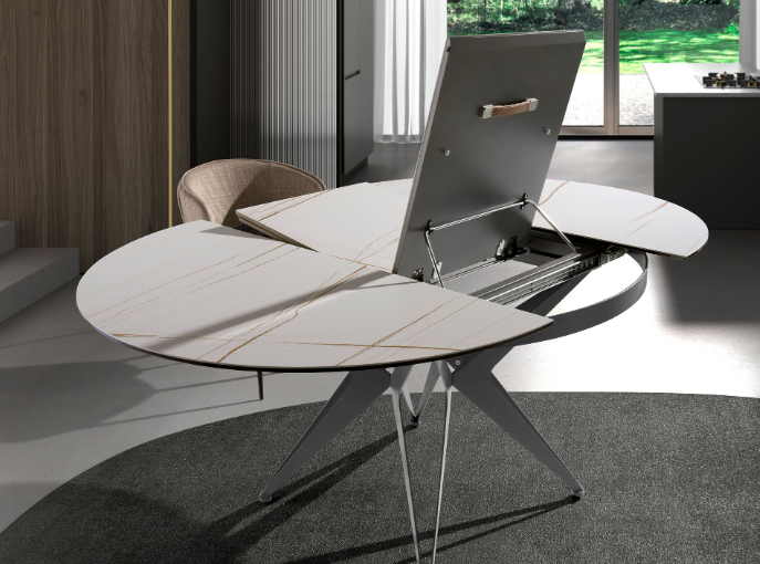 Tavolo da pranzo allungabile rotonda marmo porcellanato e acciaio color grigio