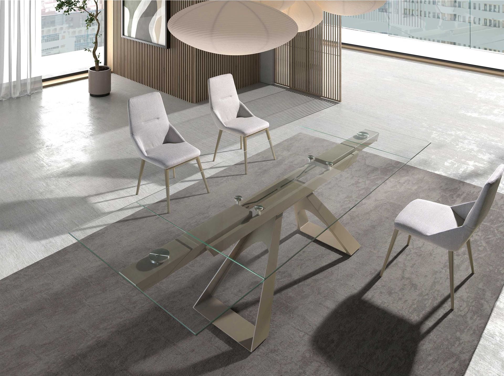 Tavolo da pranzo allungabile rettangolare vetro temperato e acciaio color champagne modelle 1125 Angel Cerdá S.L.
