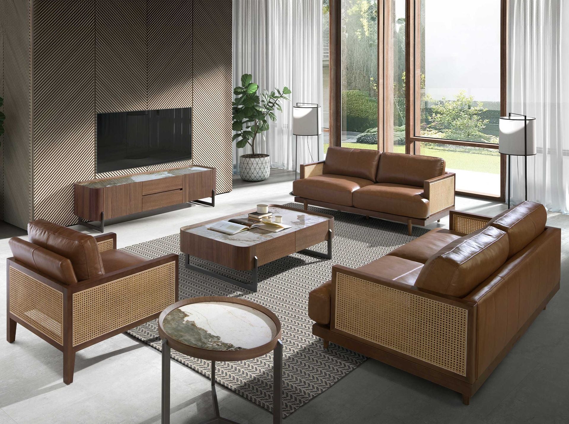 - I suoi originali braccioli con struttura in legno color noce e dettaglio in rattan, danno il tocco di tendenza e stile che cercate nel vostro salotto.