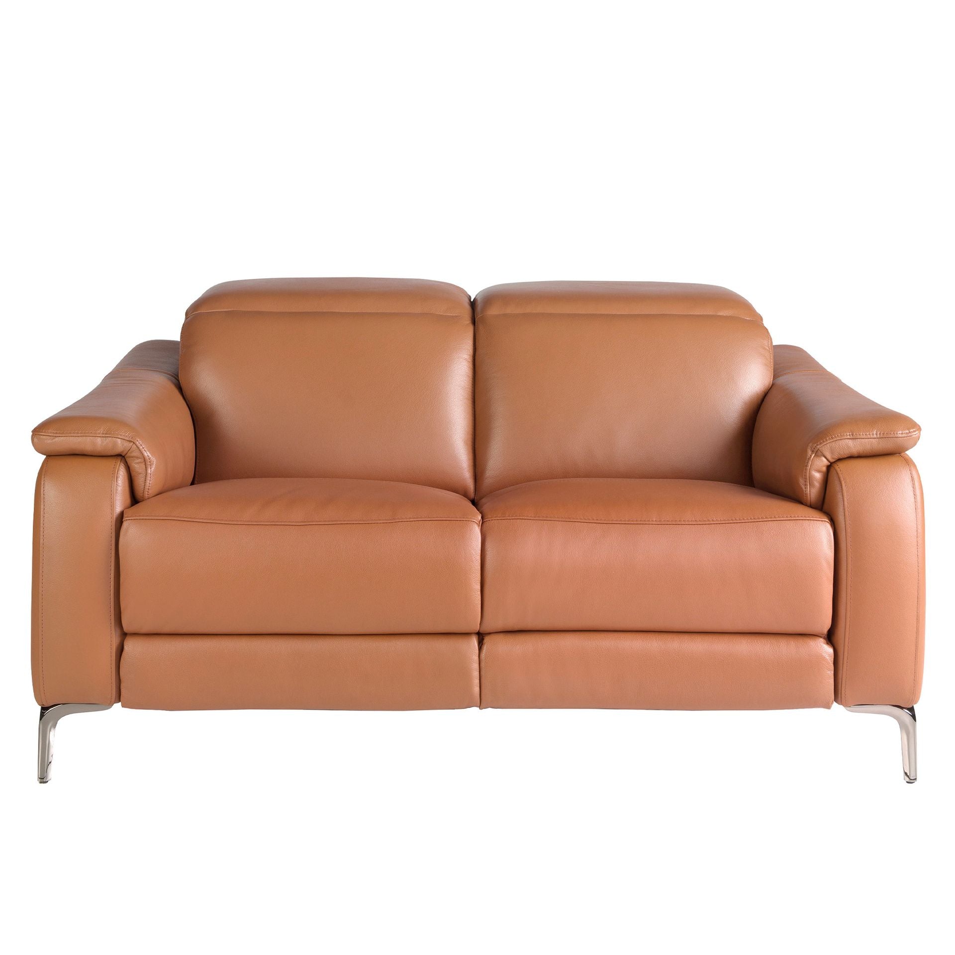 Divano relax a 2 posti dal design moderno, rivestito in pelle bovina marrone e dotato di poggiatesta per un maggiore comfort. Sia per il suo stile che per le sue gambe in acciaio inox cromato scuro, questo divano porterà un tocco di avanguardia ed eleganza che state cercando nella vostra casa.I suoi 2 sistemi di relax elettrici vi offrono il comfort extra di cui avete bisogno per rilassarvi.