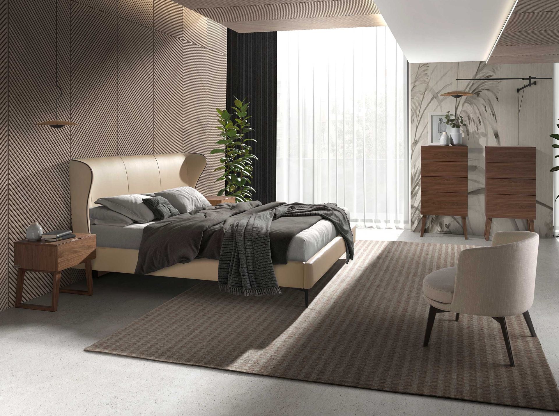 Comodino dal design moderno con struttura in legno impiallacciato in noce naturale e originali gambe in legno impiallacciate in noce naturale. Dispone di un ampio spazio di archiviazione con 1 cassetto con apertura estraibile maniglia a uncino e chiusura ammortizzata.