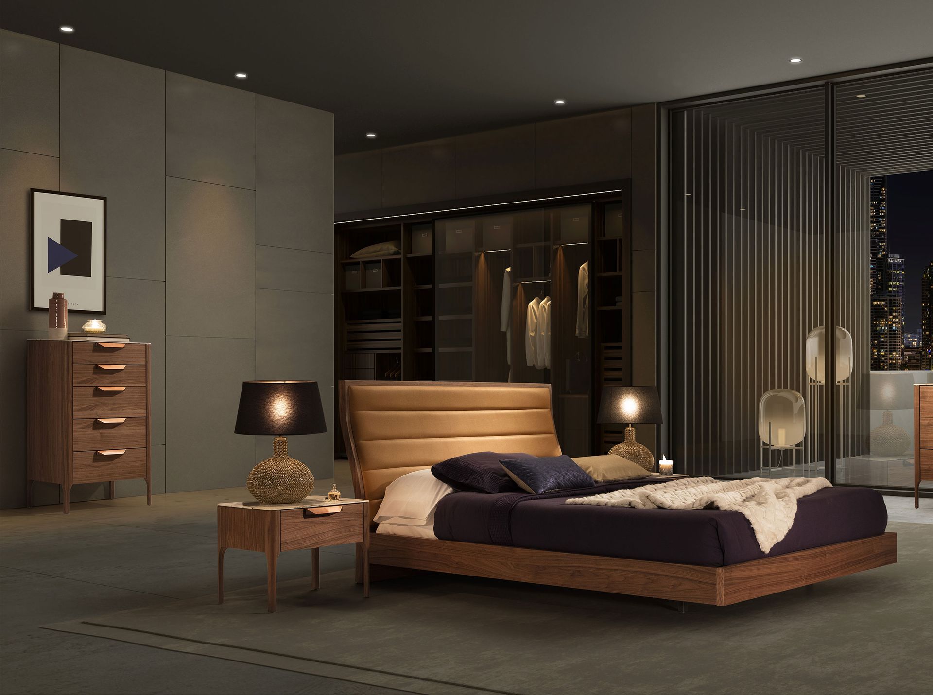 - Un elegante e sofisticato chiffonier in impiallacciatura di noce naturale di 0,5 mm di spessore che porterà un tocco di modernità e calore alla vostra camera da letto.
