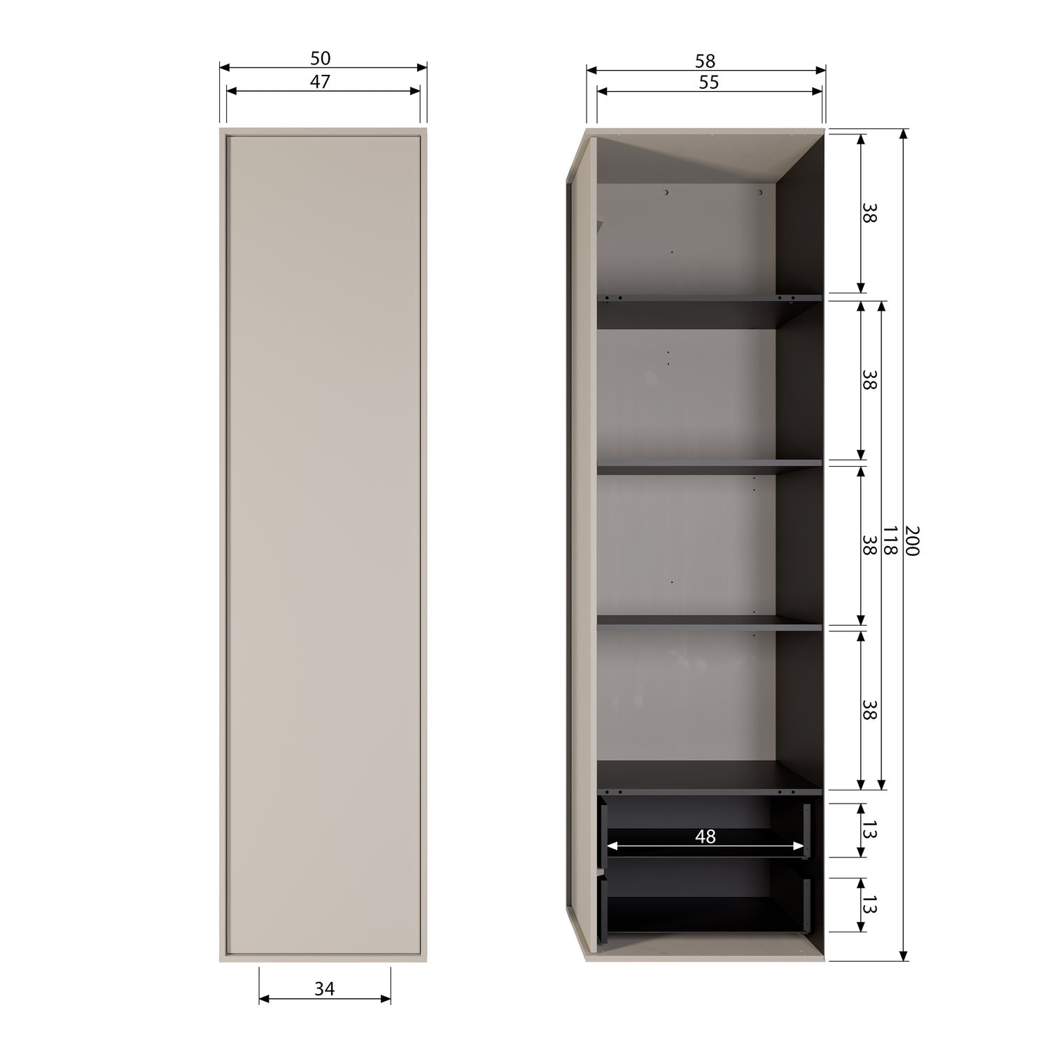 - A 200 cm x L 50 cm x P 58 cm