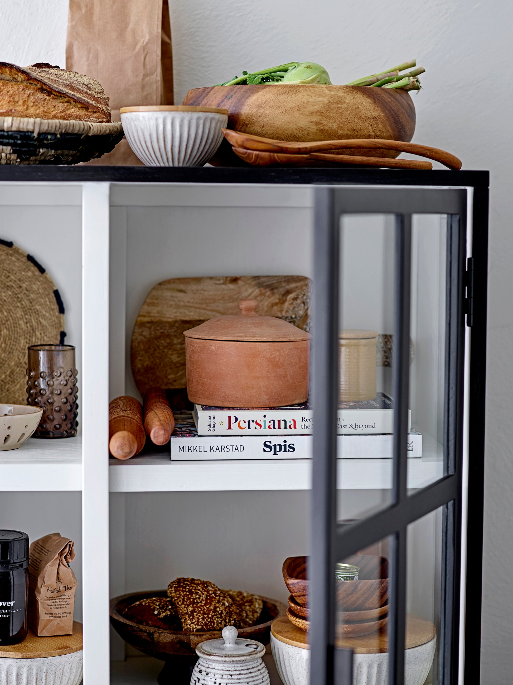 Opal è un bellissimo mobile in rovere nero di Bloomingville. Ha eleganti ante in vetro con sei riquadri ciascuna, quindi il mobile forma una bellissima vetrina con i ripiani bianchi del mobile.