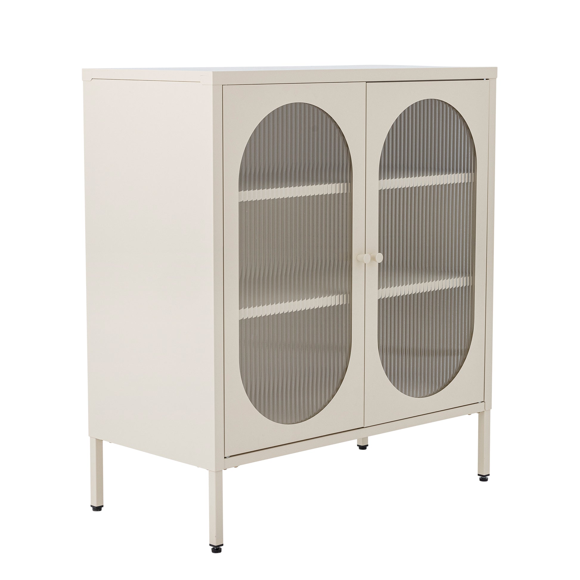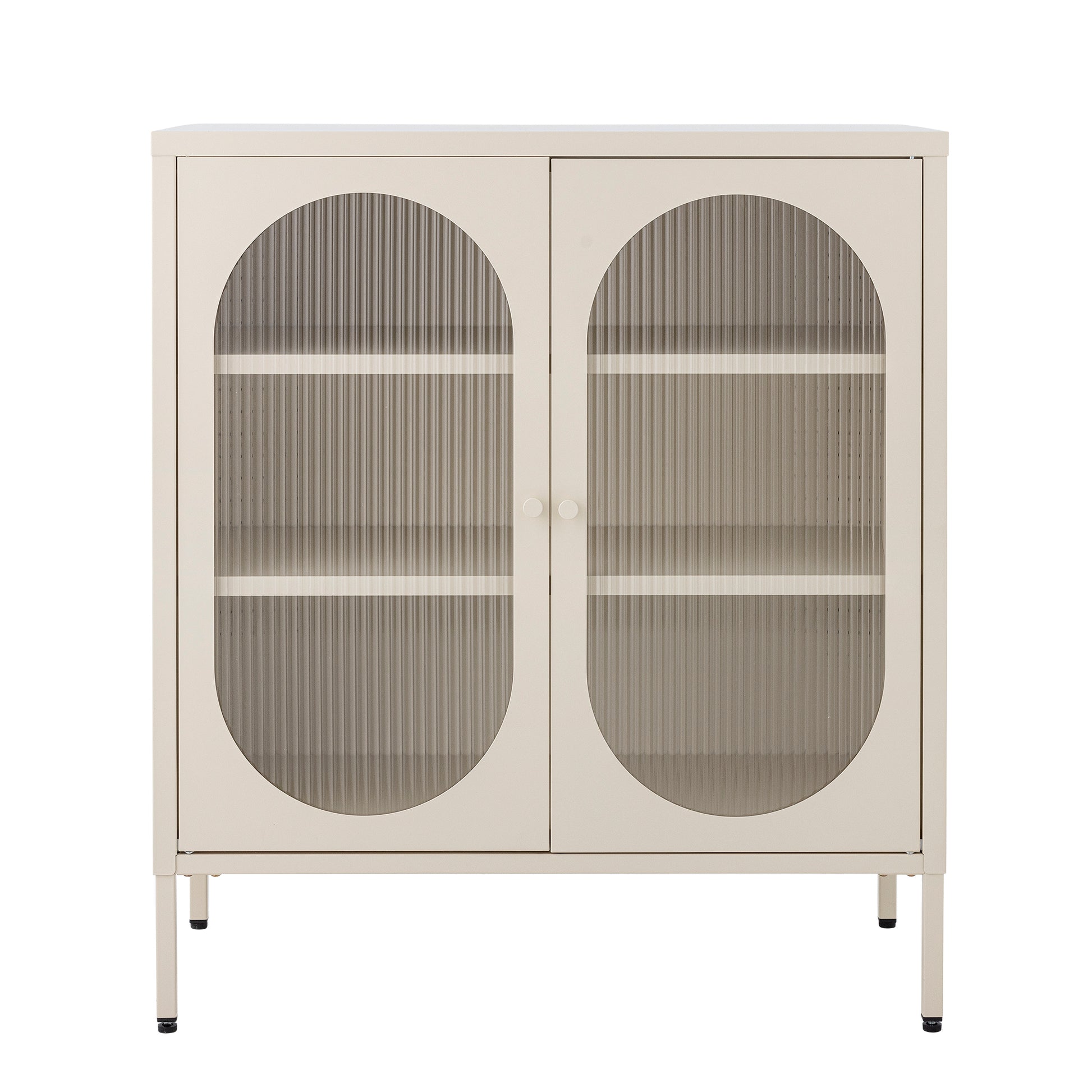 Il mobile Salvo di Bloomingville è un bellissimo mobile in metallo in un morbido colore sabbia che aggiunge eleganza a qualsiasi stanza. Le due ante del mobile presentano dettagli decorativi in vetro cannettato. Con i suoi pratici ripiani, questo mobile è ideale sia per riporre che per esporre, adattandosi perfettamente al soggiorno, alla sala da pranzo o all'ingresso.