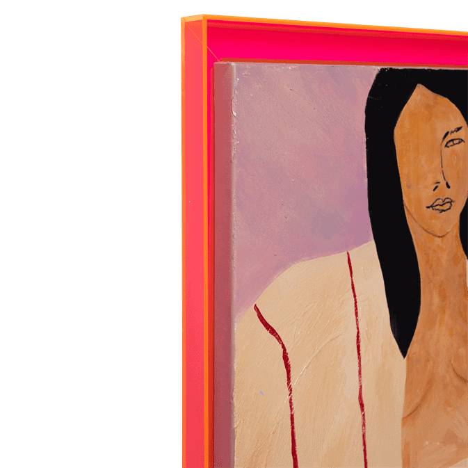 La nostra ampia e variegata collezione di opere d'arte da parete è primitiva e contemporanea, tutta dipinta a mano e unica. I pezzi d'arte sono uniti da una cornice dall'aspetto futuristico, realizzata in plexiglass.