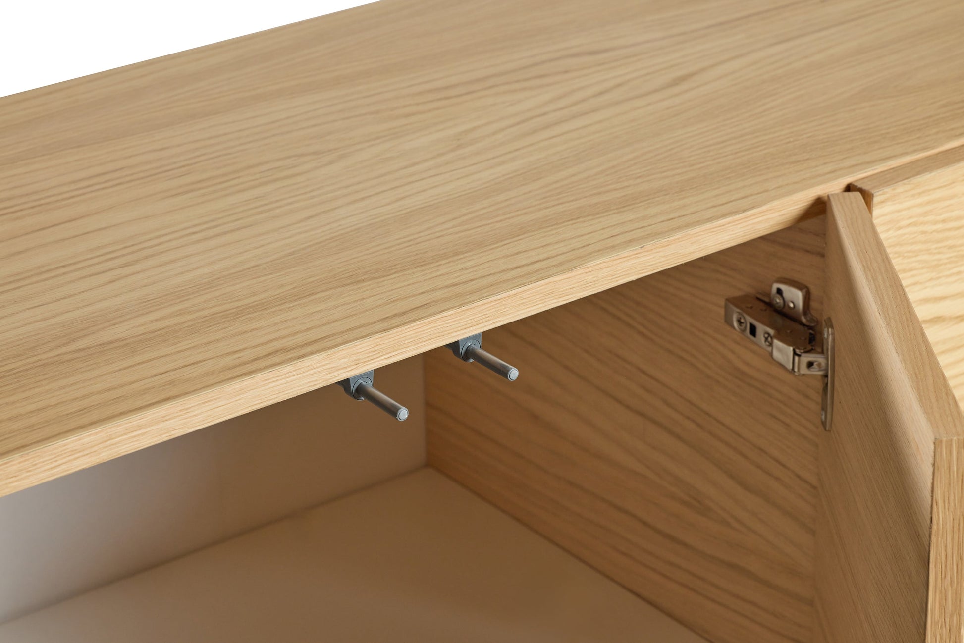 materiali: telaio e ante in Fibreboard IDRO W100 (idrorepellente e ignifugo), impiallacciato frassino naturale