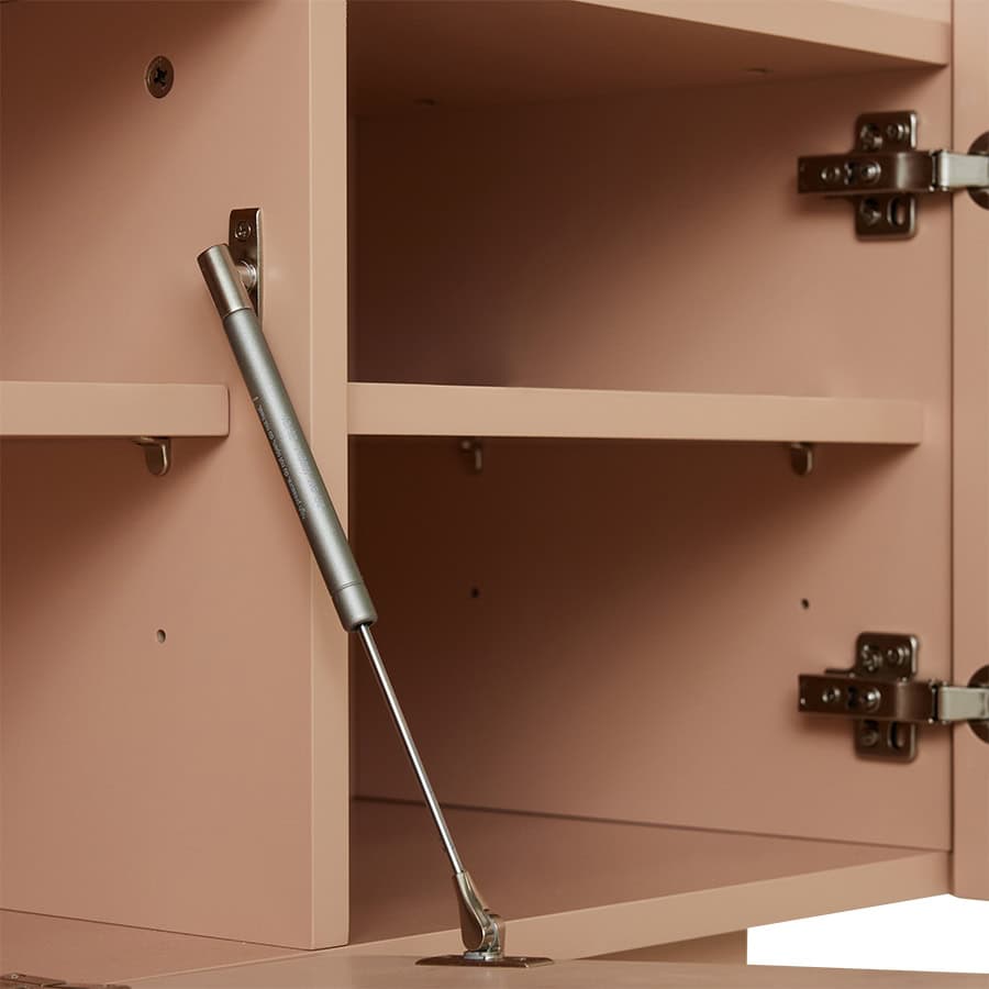 - Funzionalità: Dotato di tre scomparti: una porta a sinistra, una porta ribaltabile al centro e una porta a destra, ciascuno con un ripiano interno. Include un sistema di chiusura soft-close e fori per il passaggio dei cavi sul retro, rendendolo ideale come mobile TV o unità multimediale.