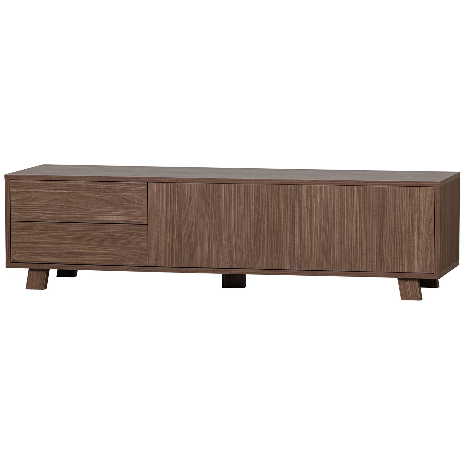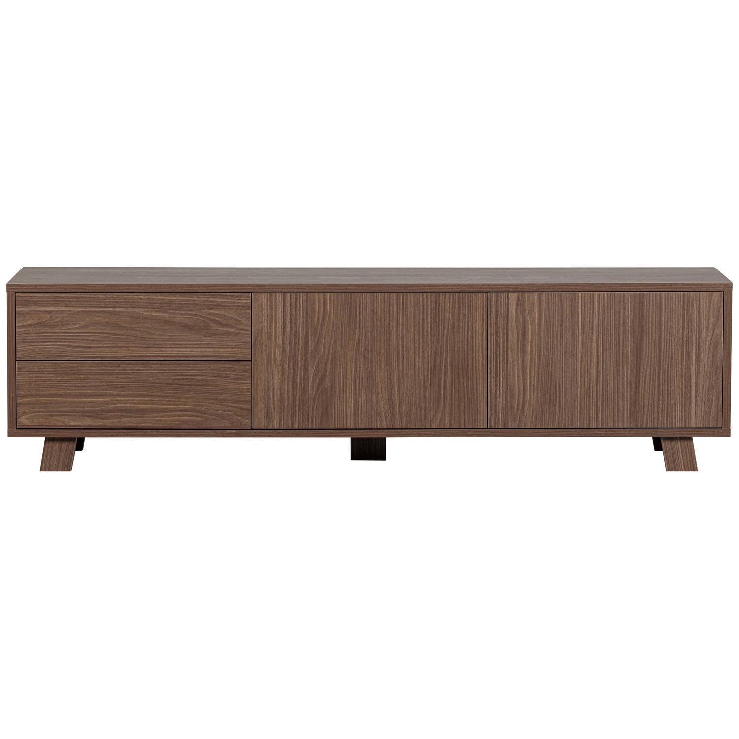 Il mobile TV Seppe è realizzato in attraente impiallacciatura di noce dall'aspetto caldo. Il mobile TV della collezione del marchio olandese di interior design WOOOD è caratterizzato da un design elegante. Le gambe basse e a blocco conferiscono ai mobili un tocco robusto e rendono Seppe perfetto in vari stili di interni. Quindi Seppe si fonde facilmente con interni di design, retrò o botanici.