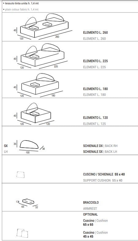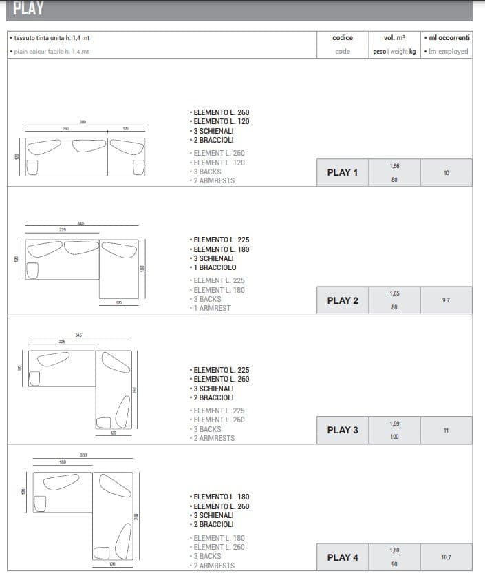 Divano PLAY componibile e sfoderabile in tessuto , velluto o pelle