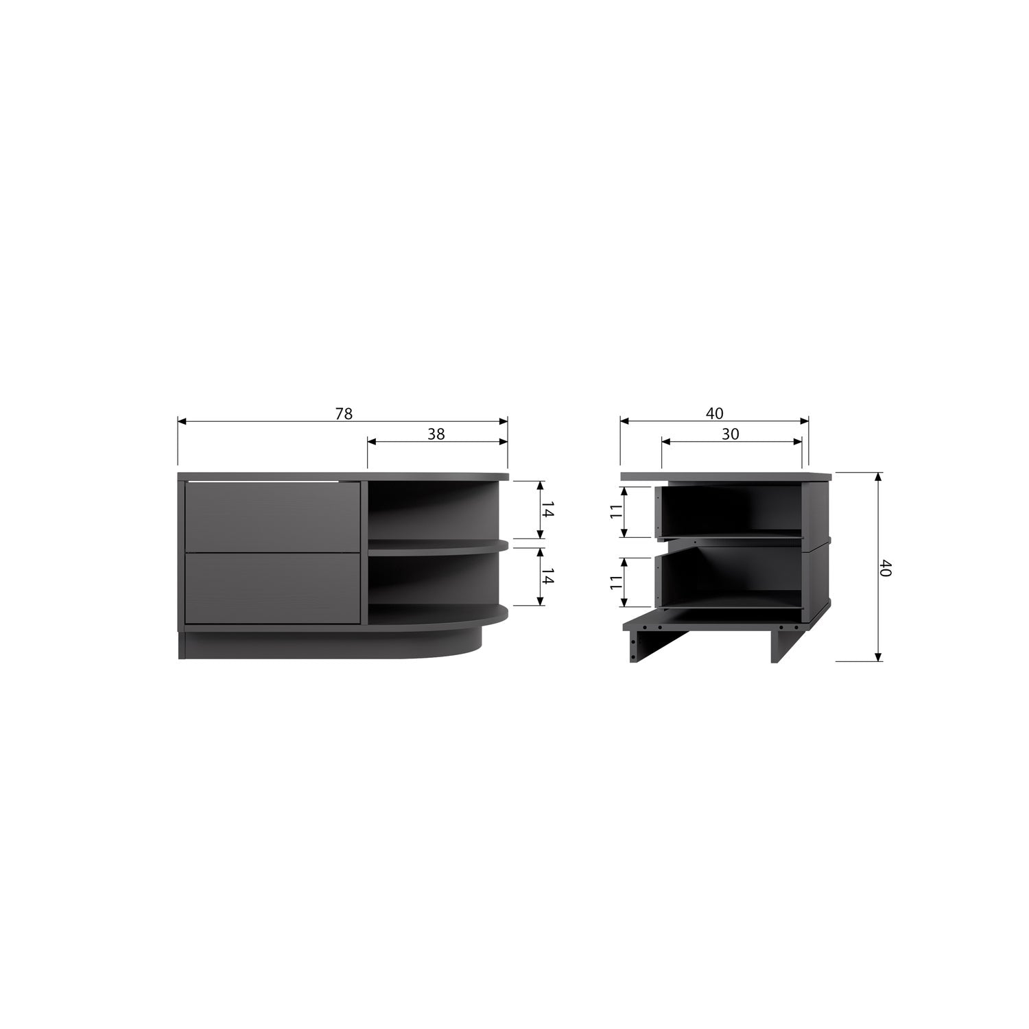 - A 40 cm x L 78 cm x P 40 cm