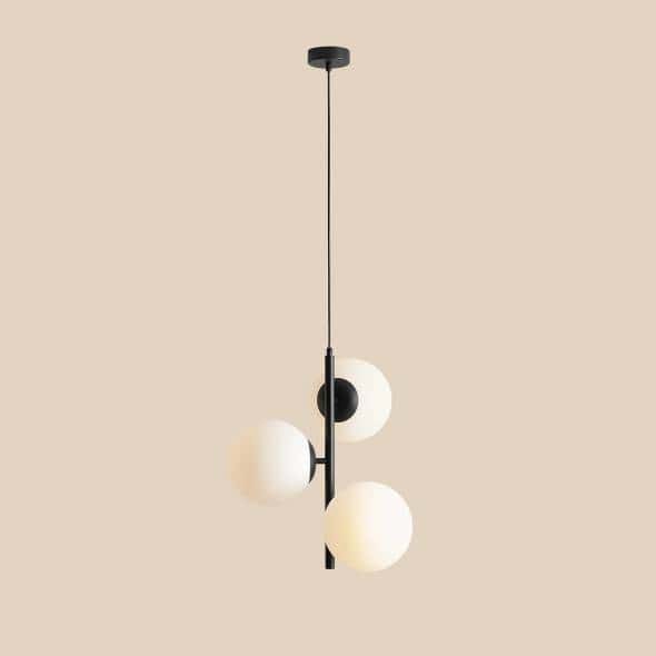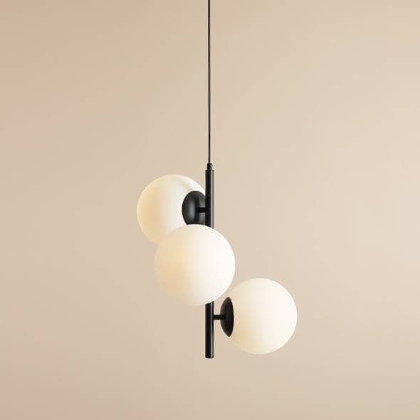 Fin 3 Black M è una lampada a sospensione caratterizzata da dimensioni ridotte e forma semplice. I paralumi dal diametro di 20 cm, provenienti da una vetreria polacca, illuminano magnificamente ogni spazio, e la luce che emana da essi è morbida e piacevolmente diffusa. La lampada è sospesa su un lungo cavo che può essere accorciato e regolato all'altezza della stanza. Un'aggiunta perfetta agli interni moderni e minimalisti.Larghezza 46Altezza 200Profondità 46Sorgente luminosa 3x E27, LEDDiametro paralume I 3x20 cmMateriale metallo, vetroColore nero opaco, paralumi bianchiAltezza dell'elemento permanente 51Scopri l'intera collezione Aldex!