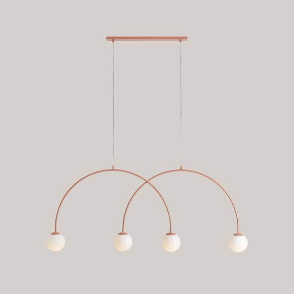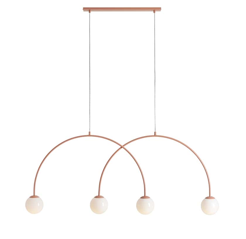 Una lampada a sospensione con un motivo ad arco alla moda nella sua linea. È un apparecchio con una finitura cromatica non convenzionale: corallo RAL3012. È dedicato agli spazi moderni ed eclettici e riempirà magnificamente lo spazio sopra il tavolo. La lampada ha proporzioni perfette e la sua larghezza totale è di 150 cm (l'altezza può essere regolata).Altezza 250Profondità 14Sorgente luminosa 4x E14 LEDDiametro paralume I 4x 14 cmMateriale metallo, vetroColore corallo RAL 3012, bianco opaleScopri l'intera collezione Aldex!