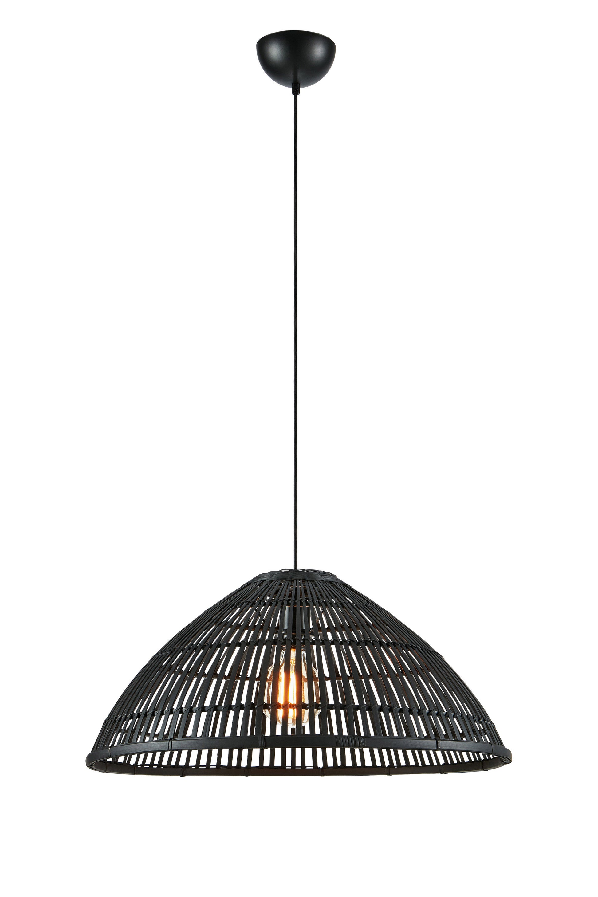 Lampadario decorativo da soffitto in bambù nero opaco intrecciato a mano. La lampada è tessuta a mano, conferendo ad ogni pezzo un aspetto unico. La lampada ha un diametro di 58 cm e si adatta perfettamente a un tavolo rotondo. Scegli una lampadina trasparente per emozionanti effetti d'ombra nella stanza. Cavo tessile nero da 150 cm e tettuccio nero. Disponibile anche in bambù naturale.