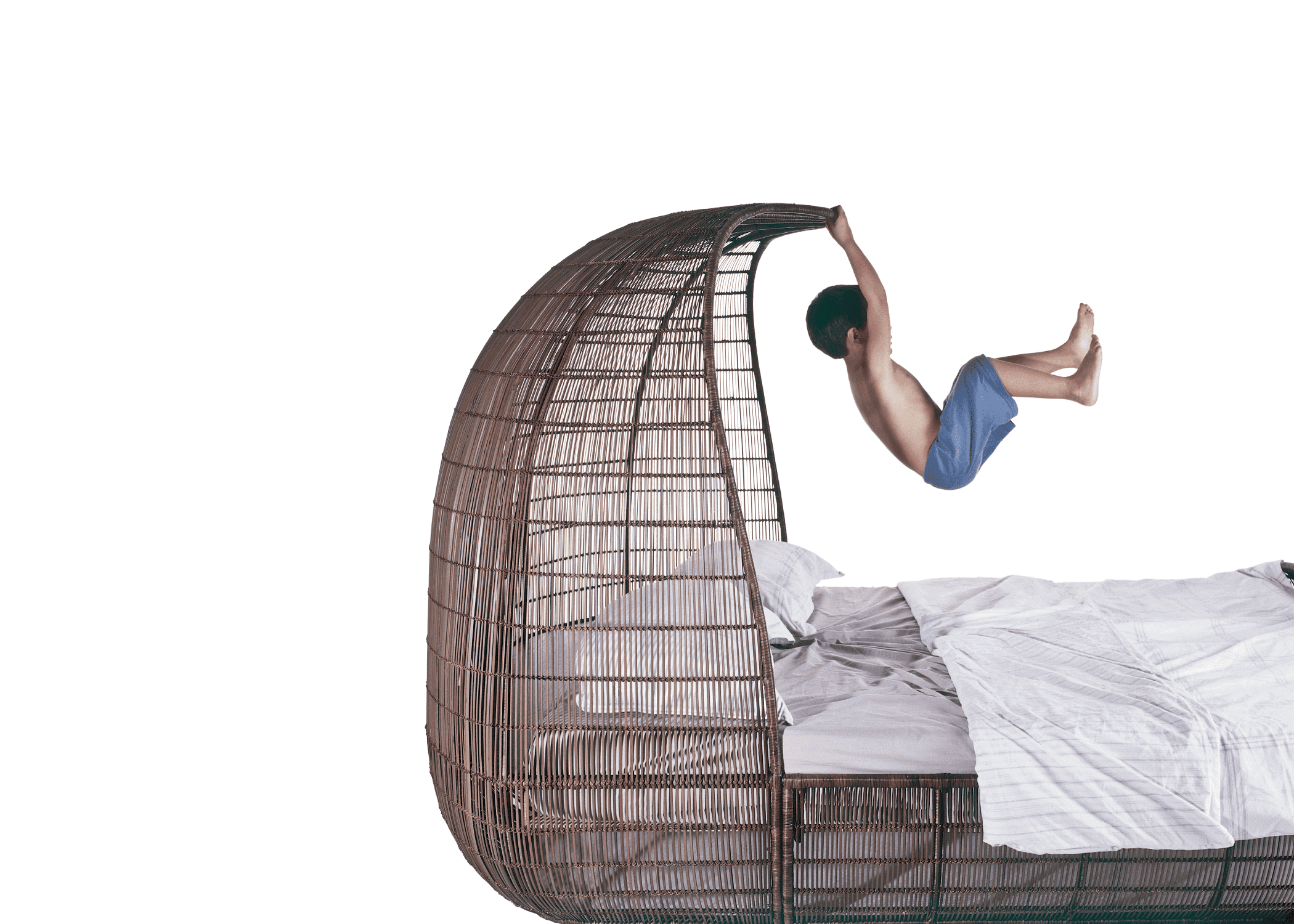 Il letto Voyage si ispira alle antiche navi da viaggio. Naviga attraverso un mare di sogni con il letto Voyage. Questa collezione romantica e unica è disegnata dal famosissimo designer Filippino Kenneth Cobonpue.