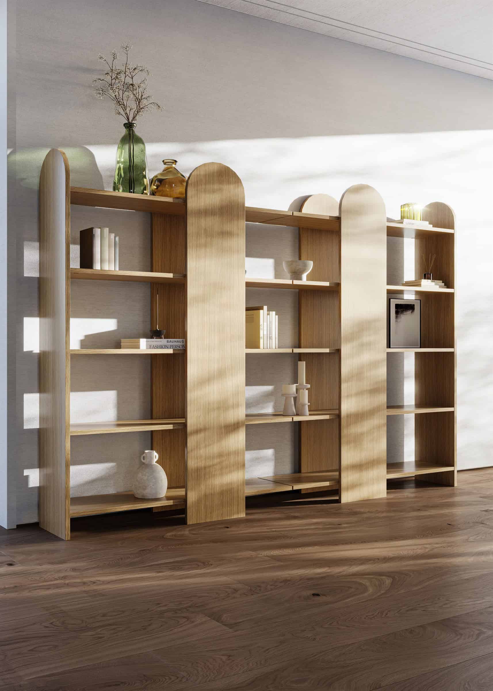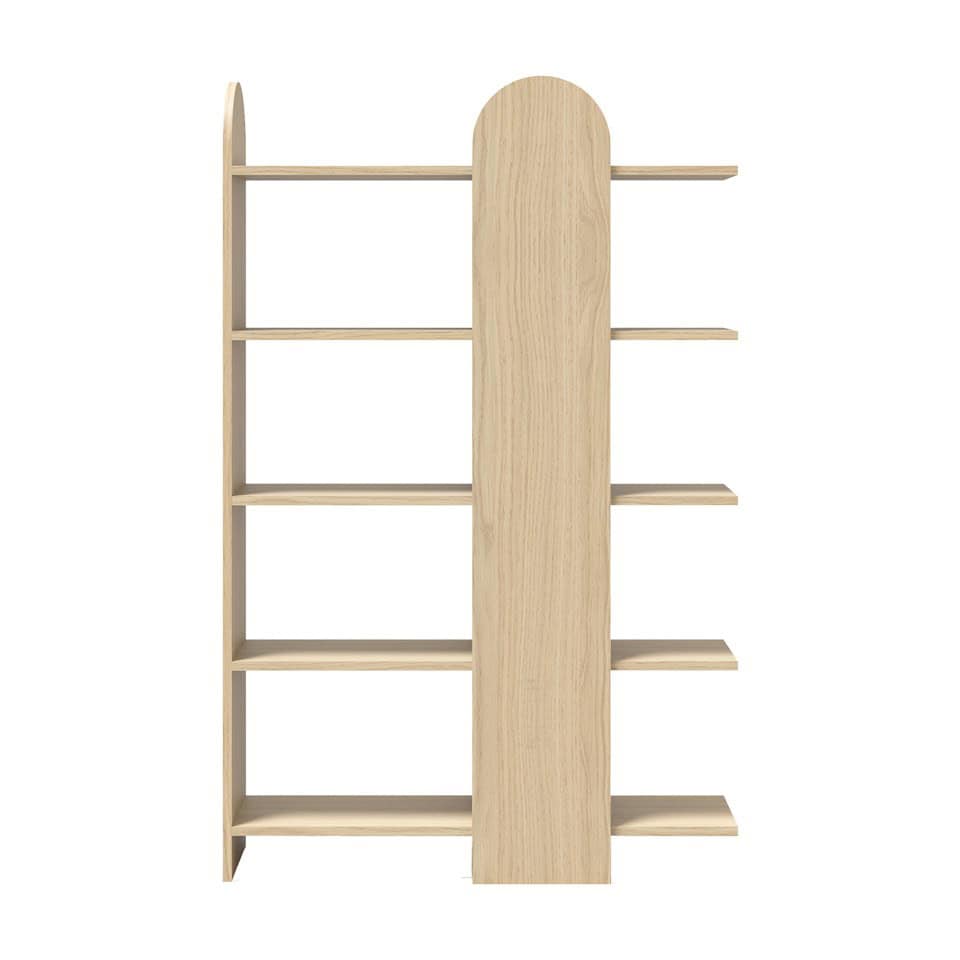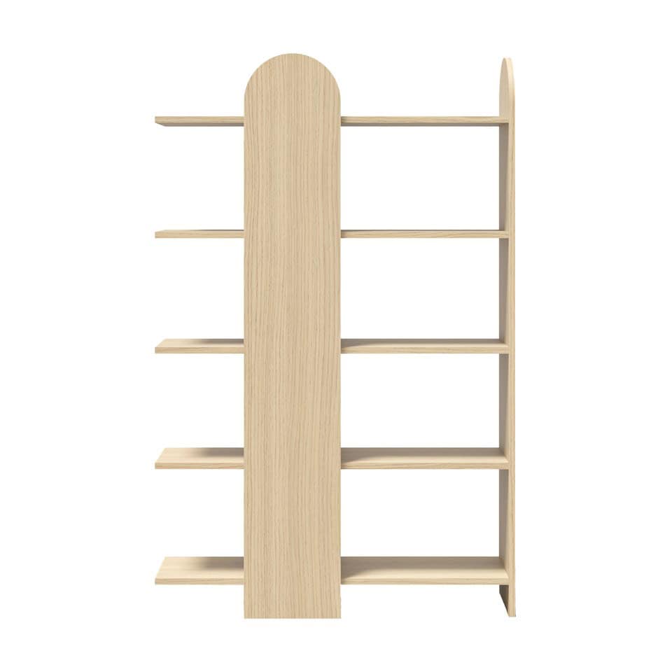 VENICE porta la sua forma affascinante a casa vostra! Realizzata con impiallacciatura di legno, il suo colore naturale e il suo design elegante la rendono una delle migliori librerie per interni moderni.Grazie ai suoi 5 ripiani, la vostra collezione di libri avrà tutto lo spazio necessario per essere esposta come strumento decorativo.Materiali: Pannello di particelle rivestito di melamina, principalmente in legno riciclato.DimensioniLarghezza: 112 cmAltezza: 175 cmProfondità: 34 cm
