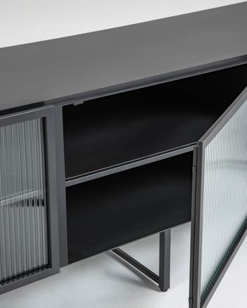 Fai entrare l’acciaio nella tua stanza, lo adorerai! Con il suo design industriale, questa credenza è perfetta per aggiungere un tocco di originalità e tendenza a questa stanza. Inoltre, con la sua parte frontale in vetro, lo stile è più che assicurato.Dimensioni: