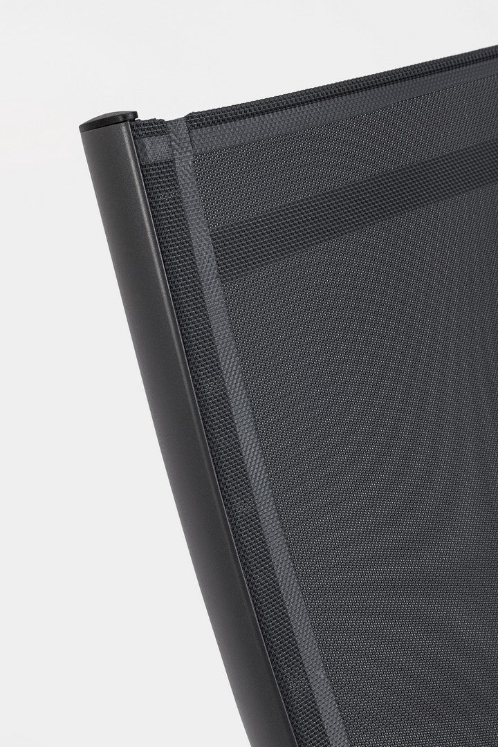 Struttura in alluminio, verniciato a polvere (poliestere). seduta e schienale in textilene 2x1 (610g/m2). ferramenta in acciaio inossidabile. schienale reclinabile (quattro posizioni).