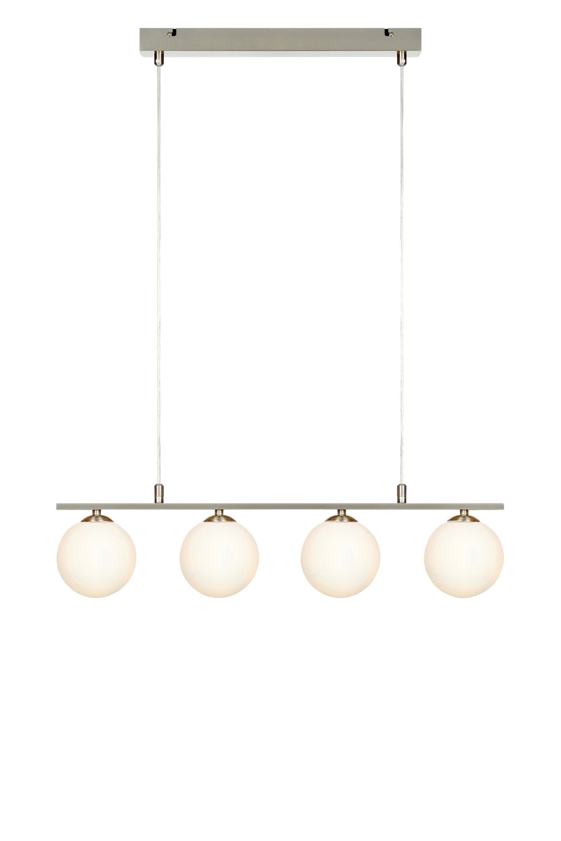 Si potrebbe dire che Quattro sia un parente stretto del Cielo. Con la sua struttura in metallo, vetro opalino e colore nero o acciaio, è una lampada da soffitto moderna che cattura delicatamente lo sguardo.
