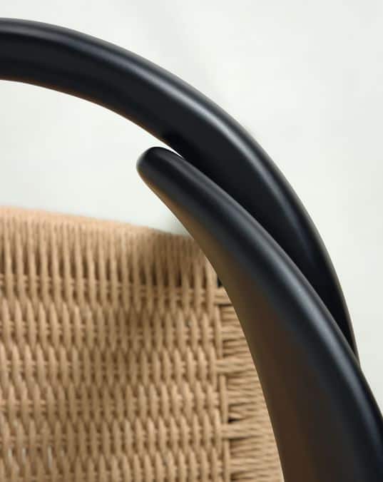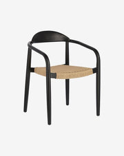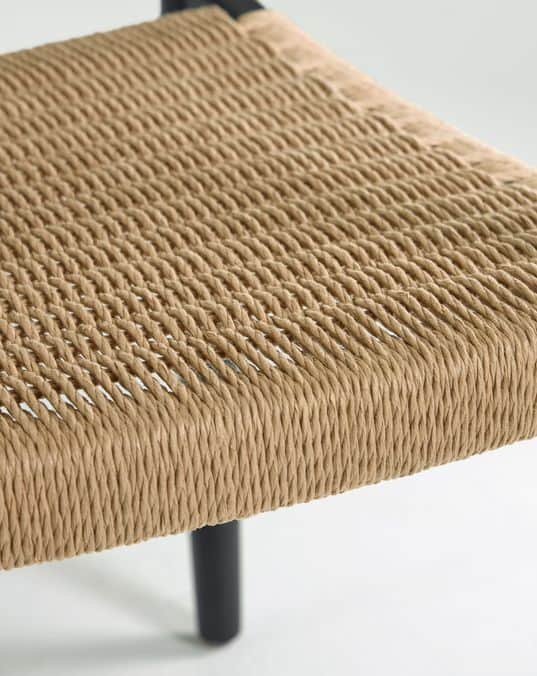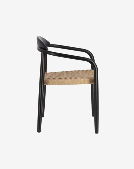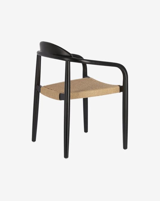 Sedia NINA in legno massello di eucalipto con finitura nera e corda beige
