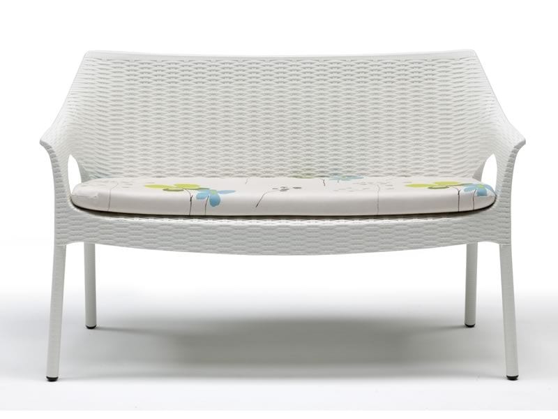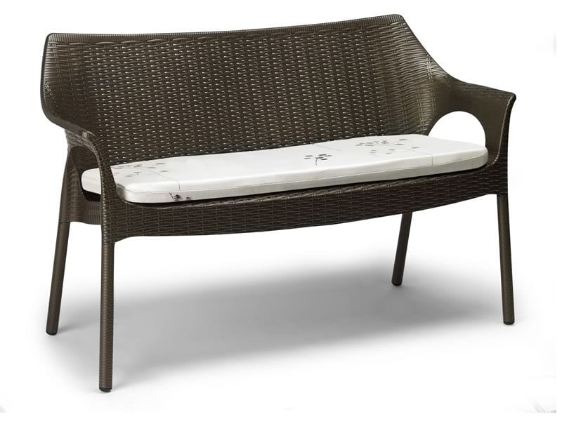 Divano in alluminio e tecnopolimero, impilabile, per giardino.Divano moderno ideale per l'arredo esterno di giardini e terrazzi.Il divano Olimpo ha scocca in tecnopolimero rinforzato fibra di vetro e gambe in alluminio rivestite in tecnopolimero con la stessa lavorazione intrecciata della seduta. Disponibile in diversi colori.La particolare realizzazione dell'intreccio consente il passaggio dell'aria sullo schienale e sul sedile.Le linee sinuose e l'originale lavorazione ne fanno un prodotto adatto a qualsiasi ambiente.Il cuscino in tessuto, cotone drill, incluso rende la seduta ancora più confortevole.Questo divano per esterno, quando non utilizzato, può essere impilato fino a 4 pezzi.Dimensioni: