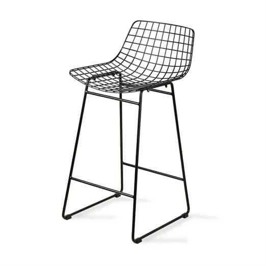 Sgabello bar in filo di in metallo verniciato nero, per un maggior comfort abbinalo al cuscino WIRE , velluto color terra o verde oppure tessuto girigo antracite.