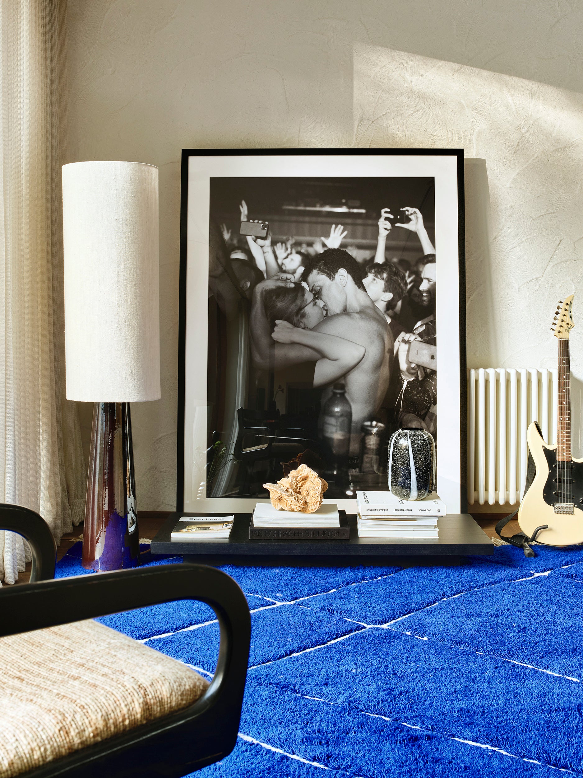 Oltre al calore e all'acustica, i tappeti sono il compagno perfetto anche in termini di carattere. Questo tappeto in lana cobalto è perfetto per pavimenti nudi e salotti suggestivi.
