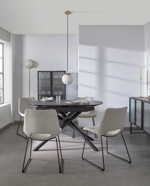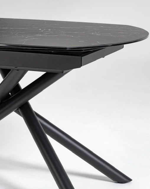 Nella tua casa ci sará spazio per tutti con questo tavolo allungabile con piano in porcellanato. Inoltre, con la sua struttura con gambe incrociate, hai più spazio e comfort, senza che le tue gambe tocchino in nessuna parte del tavolo.